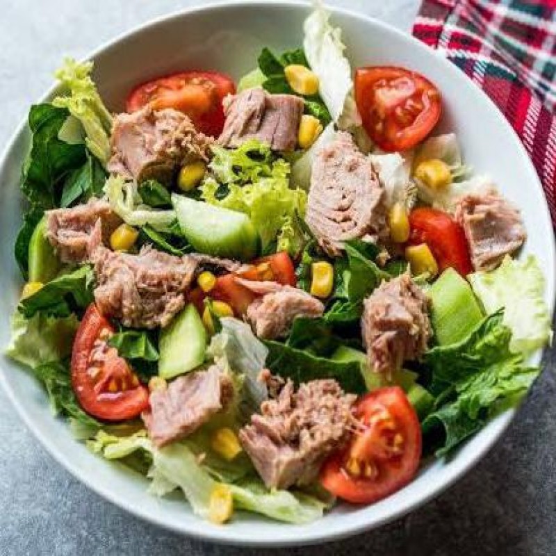 Marul, Havuç, Kırmızı Lahana, Zeytin, Salatalık, Domates, Mısır, Ton Balığı, Zeytin Yağı
