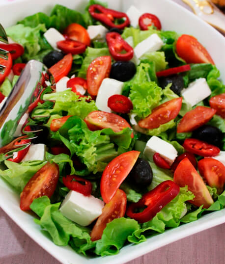 Marul, Havuç, Kırmızı Lahana, Zeytin, Salatalık, Domates, Zeytin Yağı, Limon